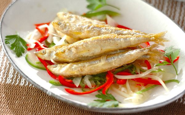カリッと揚げたワカサギでおしゃれなマリネを作りましょう。ワカサギを揚げたら、熱いうちにドレッシングビネガーやオリーブ油などで作ったマリネ液に浸けるのがポイント。味がしみ込みやすくなりますよ。野菜の色どりが鮮やかで、目でも楽しめますね。