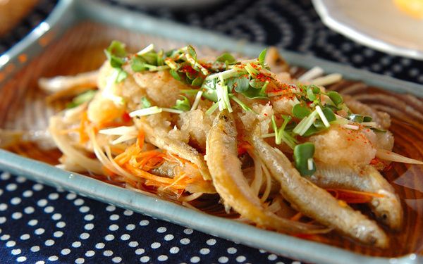 ワカサギは揚げ物にするのがポピュラーな食べ方。小麦粉・ベーキングパウダー・片栗粉で作った衣をからめてさっくり揚げると、ついつい箸が伸びる一品になりますよ。塩コショウやゴマ油で下味をつけているので、風味豊かな味わいです。