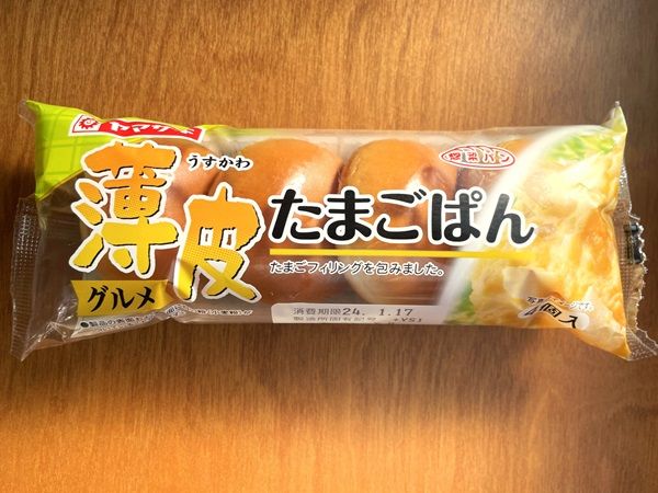 しっとりしたパン生地で、たまごフィリングを包んだ「薄皮たまごぱん」(4個入り、筆者購入価格172円)。パッケージに書かれた新シリーズ名「薄皮グルメ」の文字がなんとも新鮮です。
