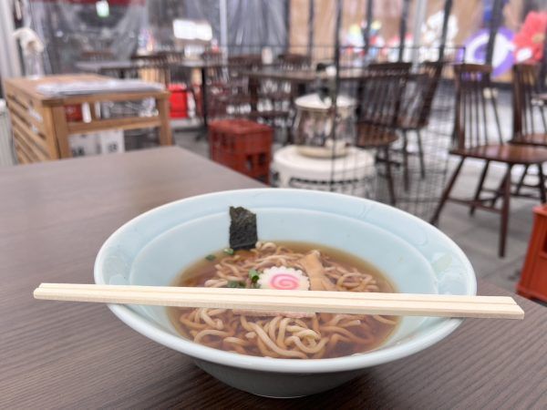 テラスで頂く100円ラーメンの味