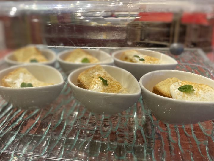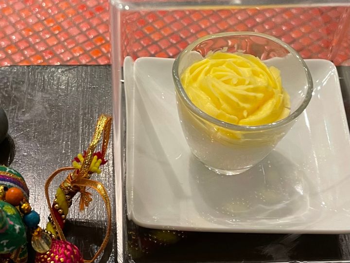 出典:MORE「マンゴーラッシーエスプーマとヨーグルトアイスクリーム」カレーのお供に欠かせないラッシーがエスプーマに!ふわふわの舌触りと冷たいアイスクリームの口溶けが最高すぎました♡こちらも満腹でも食べられちゃうメニュー(笑)