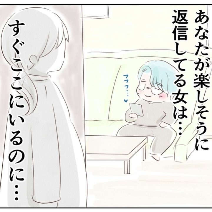 相手がめぐみだとは知らずうれしそうにスマホを眺める夫ですが、家族を裏切っていることに心は痛まないのでしょうか。