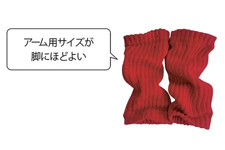 「100円ショップで購入したアームウォーマー。レッグウォーマーは窮屈感のないゆるっとしたサイズのものが多く、ずれて落ちないしっかりめのホールド感が欲しかったので、腕用を脚に転用。夏場は室内の冷房対策としても使ってるので、パンツをはいている日はほぼ一年中着用しています」(スタイリスト・船戸唯さん/私物)