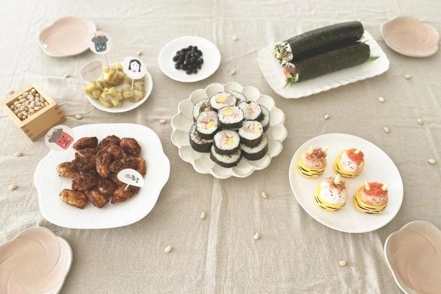 節分の代表的な食べ物のひとつである恵方巻。縁起の良い方角に向かって一本丸ごと食べるのが基本ですが、子どもの口には大きすぎるので難しいですよね…。子どもが喜ぶかわいい見た目で、食べやすそうな節分レシピをご紹介します♡