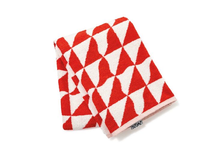 ブルックリン発のホームグッズブランド『Dusen Dusen』のバスタオルは、ビビッドな色使いとグラフィカルなラインが特徴。大判だから夏場はタオルケットとしても使える。76×142cm ¥9,900(デューセン デューセン/モットハウス・トーキョー)