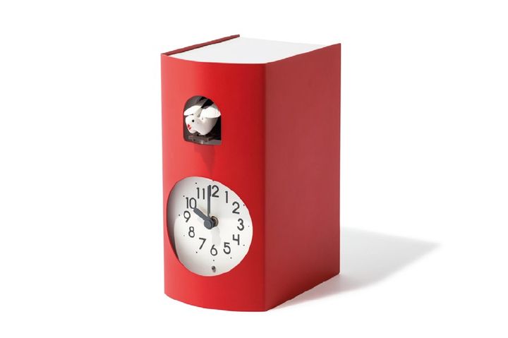 日本の古典的な鳩時計をベースに作られた、コンパクトな鳩時計。本の形をしたユニークなデザインで、壁に掛けたり、ブックエンドとして本棚や机の上に置くこともできる。W8.9×D12.8×H18.2cm ¥22,000(MoMAデザインストア 表参道 TEL:03・5468・5801)