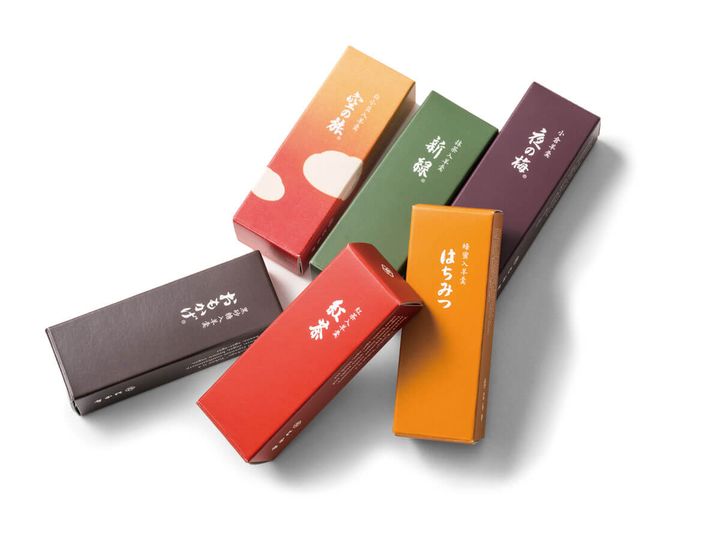 和菓子の名店として名高いとらやの、羽田・成田空港限定商品。代表商品である小倉の「夜の梅」をはじめ、黒砂糖入りの「おもかげ」、抹茶入りの「新緑」など、6種の味のスティックタイプの羊羹が1箱に。その中の1種「空の旅」は、希少な白小豆を散らした紅色の煉羊羹で、夕焼け空に浮かぶ雲を表現した空港限定の味。味わいへの信頼感はもちろん、暑さ、寒さなどの環境変化に強く、日持ちがする羊羹は、遠方へのお土産にもオススメです。