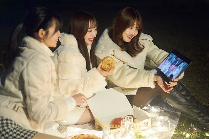 最近話題のナイトシアターから着想を得て、夜ピクをしながらみんなで映画を見るのも定番なんだとか。大音量にならないよう、イヤホンの同時接続機能を使うなど、工夫が必要!