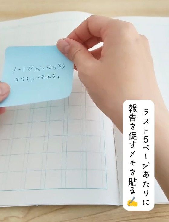 忘れないように、付箋メモに報告を促すメッセージを書き、残り5ページあたりに貼っておきましょう。