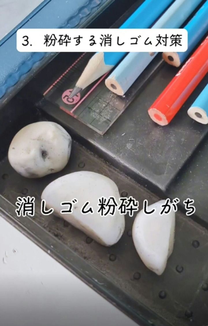 子どもの筆箱をのぞくと、バラバラになった小さい消しゴムが発見されるのは、珍しくないのではないでしょうか。