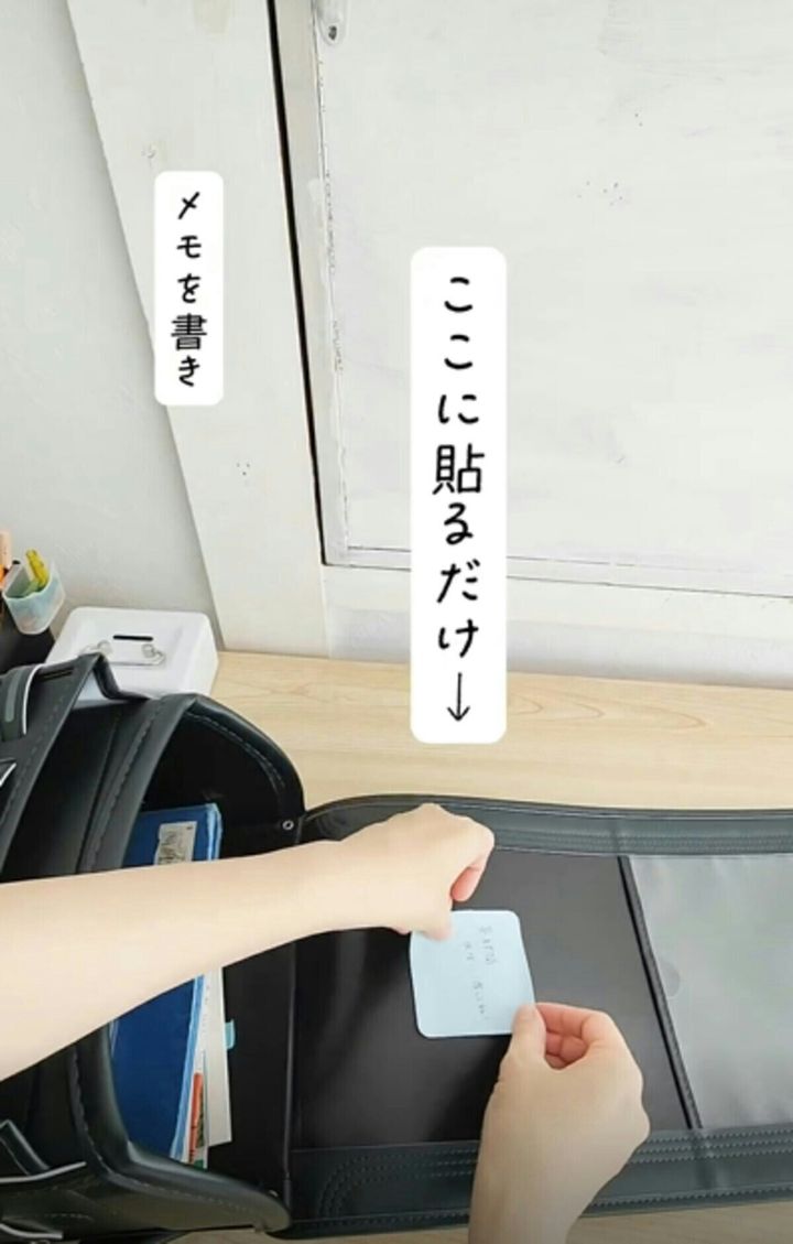 学校に行くまでに忘れてしまっていても、ランドセルを開けた瞬間に目に飛び込むメモのおかげで思い出すはずです。