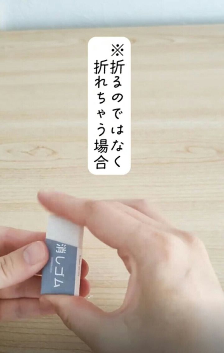 このひと手間で、消しゴムが折れにくくなるとのこと。ぜひ試してみてくださいね。