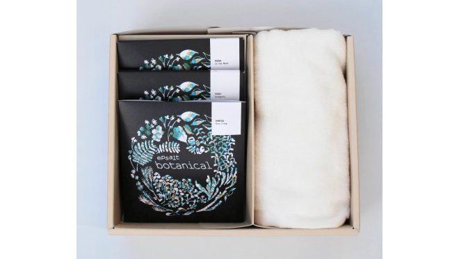 セット内容:エプソルトボタニカル100g(1回入浴分)3個、今治タオル(約34×80cm)1枚