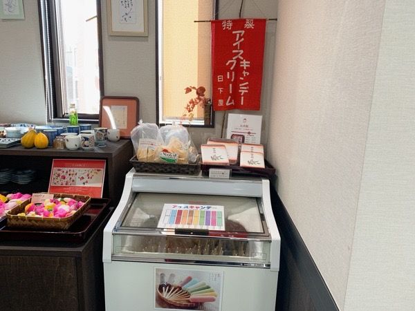 こちらは昭和25年に日下屋として創業。自転車に木箱を積んでアイスの旗を掲げ、チリーン チリーンと鈴を鳴らして遠くまで売り歩いた「手づくりアイスキャンデー」が原点の老舗のお餅屋さんです。
