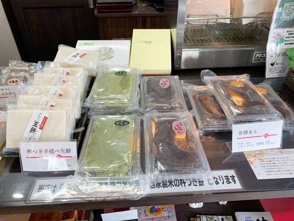 こちらには杵つき餅に各種あん(小倉・ずんだ・ごま・練あん)が売られていて、セットで購入したらお家で簡単につきたて餅が食べられちゃいますね。