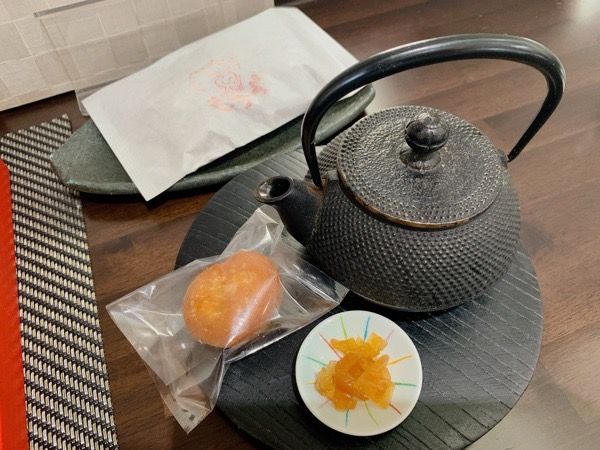 南部鉄器の急須に入ったお茶も風情があっていい感じ。