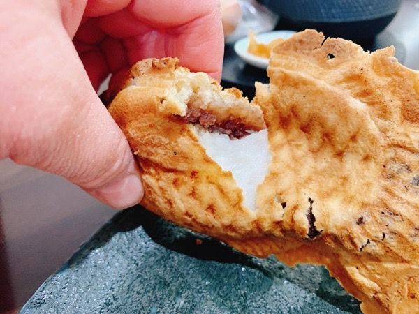 中を割ってみたら贅沢なくらいぎっしりお餅が詰まっていてびっくり! あんことお餅がベストマッチ。
