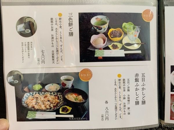 私は「五目ふかしご膳」と「だんごたいやき」を注文。