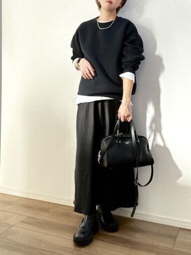 カジュアルの定番であるスウェットトップスも黒ならモードな雰囲気になり、大人世代もデイリーに採り入れやすいでしょう。