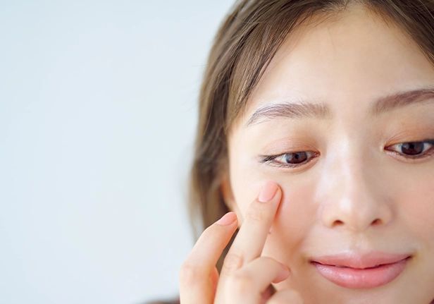 目の下の疲れが出やすい部分にも、逆三角形にトントンとなじませる。くすみも飛ばして明るさも復活!