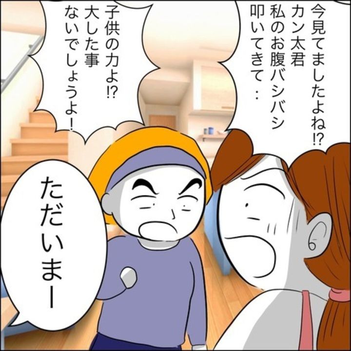 修羅場に帰ってきた大介さんは、まっさきにカン太君に事実を確認しました。大人だけでなく当事者のカン太くんの話を聞く夫は冷静な人のようですね。