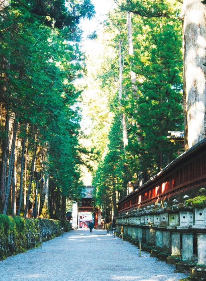 日光東照宮と二荒山神社を繋ぐ、巨木と灯籠が立ち並ぶ上新道。