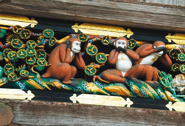 三猿の彫刻は、人の欠点や過ちは、見ない・聞かない・言わないのがよいという意味が込められている。