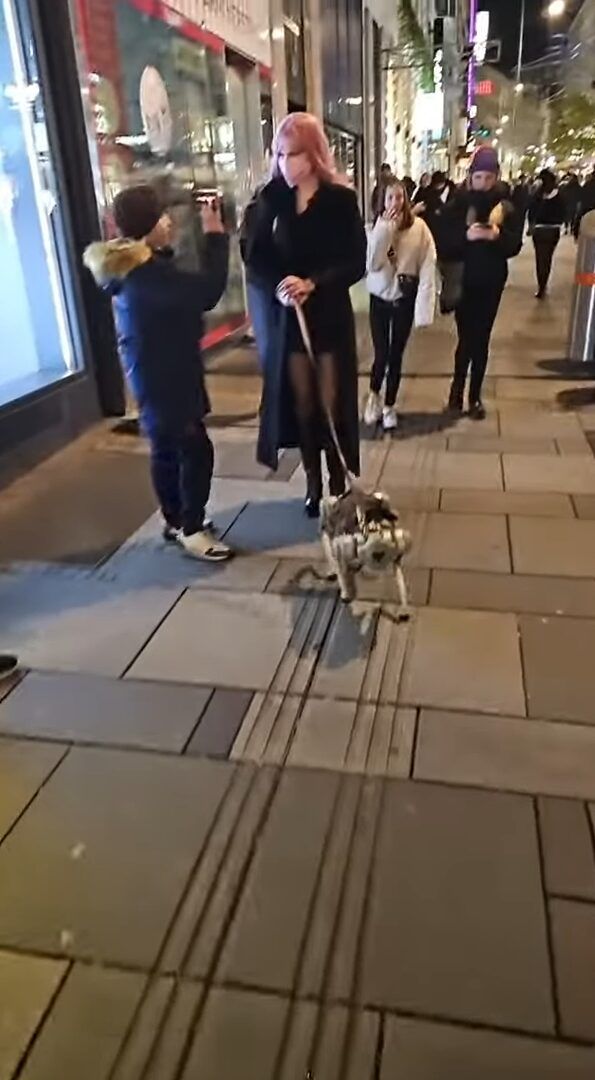 愛犬を女性が散歩させているかと思いきや、その愛犬はなんとロボット犬でした!