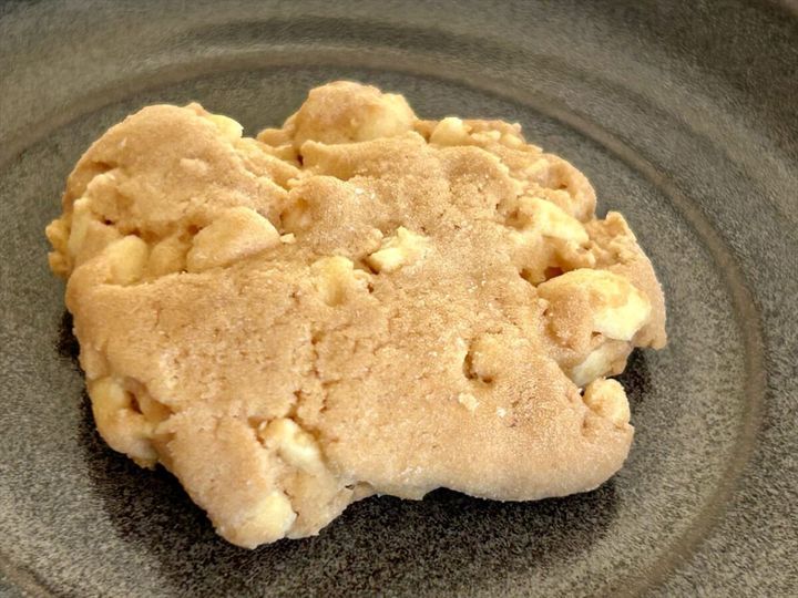 それではいただいてみましょう。袋の中から現れたのは、直径5cmほどのサブレ。「新之助」の米パフが練り込まれていて、ゴツゴツとした形が特徴的です。