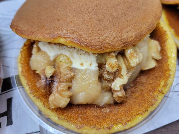 くる美ちゃん 350円 くるみ餡とバタークリームとローストくるみのくる美ちゃん。くるみ好きです!食感がいい!泉州名物のくるみ餅の餡をローストくるみがたっぷりはさんであります!もちろん、おいしいです!ちなみに、前回の季節限定のリン子は、カスタードクリームとバターホイップクリームとりんごのキャラメル煮とスペキュロスのドラキチでした。今回のイチローは、ピスタチオ餡と苺とバターホイップクリームのドラキチだそうです。楽しみです!色々な季節限定のドラキチを楽しみたいと思います。