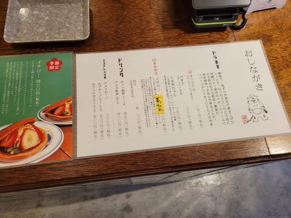 ショーケースの中には、どら焼きの「ドラキチ」が入っています。昨年、ドラキチのくる美ちゃんと季節限定のリン子にハマって、ずっと食べていました。(笑)