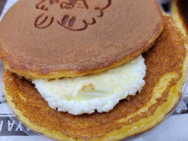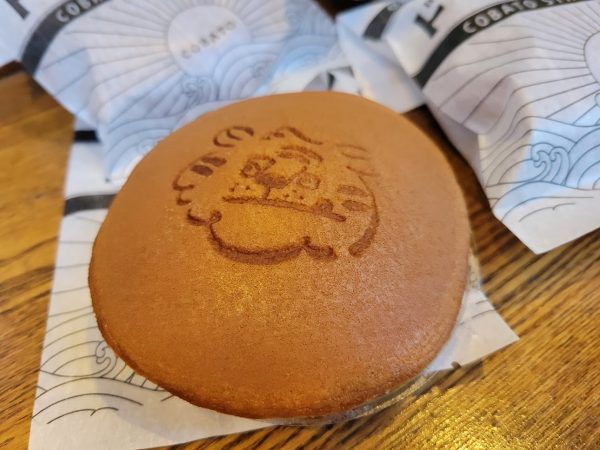 このどら焼きの皮がしっとりともっちりとしていておいしいんです!ドラキチの焼き印がありますね。香ばしいドラキチです。