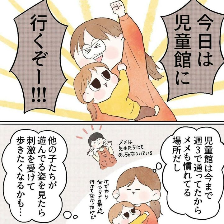 まろさんによる作品『2歳の娘が歩かなくなった話』は、ケガをしたことをきっかけに歩かなくなってしまった娘・メメちゃんと、ママ・まろさんを描いた作品です。屋内の遊び場でケガをし、靭帯損傷と診断されたメメちゃんは、これをきっかけにケガが怖くなり、これまで大好きだった走ること、踊ること、外で遊ぶことをしたがらなくなってしまいました。