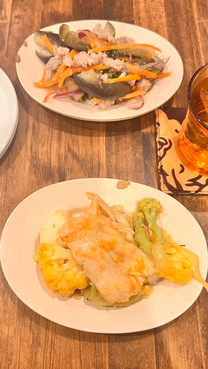 友人は【蒸し茄子と鶏ひきのタイ風サラダ】 100g 450円
