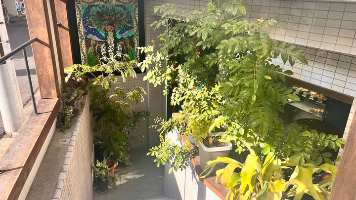 入り口は階段を降りていくのですが、青々とした植物がこれまた素敵~。