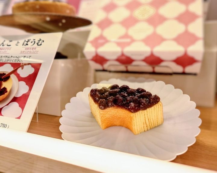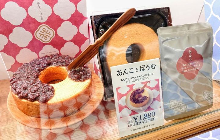 リニューアルに合わせて新発売した「あんことばうむ」。和(あんこ)と洋(バームクーヘン)が結びつき、ブランドコンセプトを表現しています。美十の代表菓子「おたべ」や「京ばあむ」で培った職人の技を生かし、登場以来すでに人気もの!