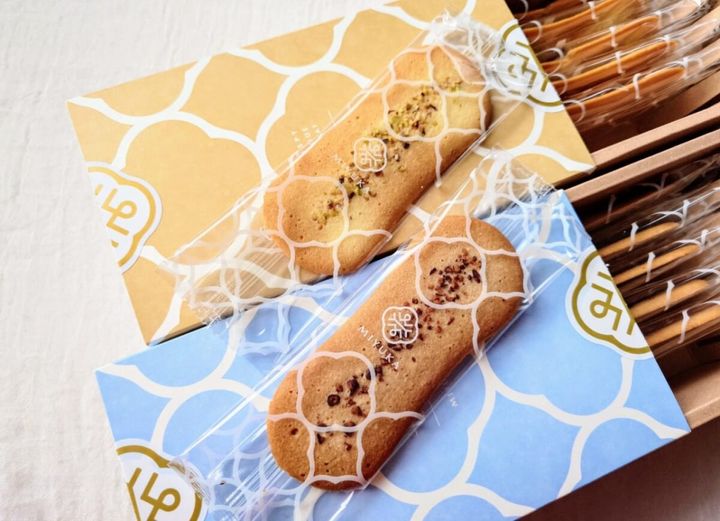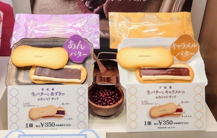 人気第1位は、お店と同じ名前の生ラングドシャ「美結菓(みゆか)」。自家製のこしあん・キャラメルクリーム・生バターシュガーを絞って、2枚のラングドシャで挟んでいる“進化形ラングドシャ”です。