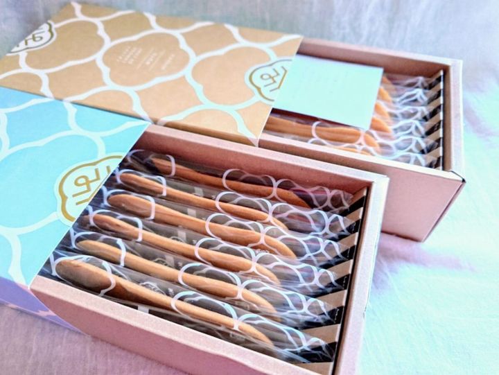 特別な箱で繊細なラングドシャを固定するスライド式のBOX。