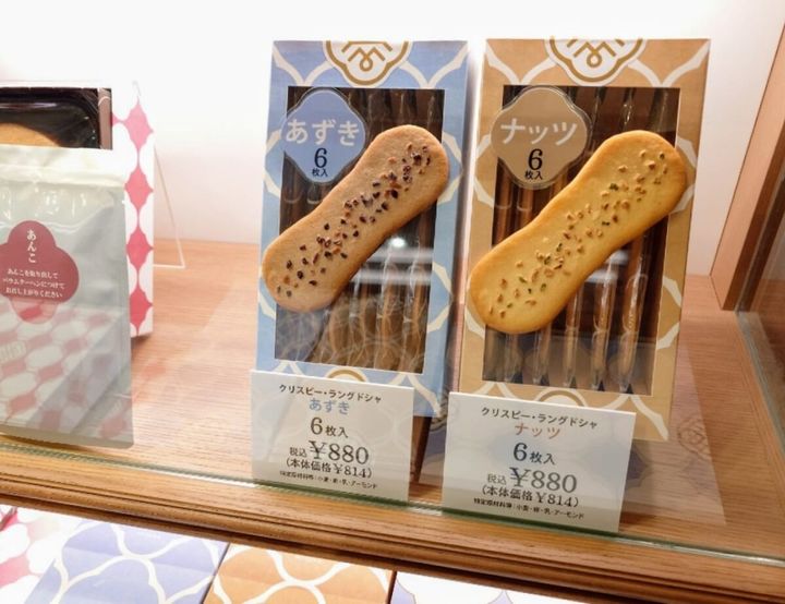 クリームを挟まず、ラングドシャの香ばしい食感を追求した「クリスピー・ラングドシャ」。あずきと米粉で作った和風タイプの「あずき」と、フランス産バターと小麦粉で作った王道タイプの「ナッツ」の2種類。