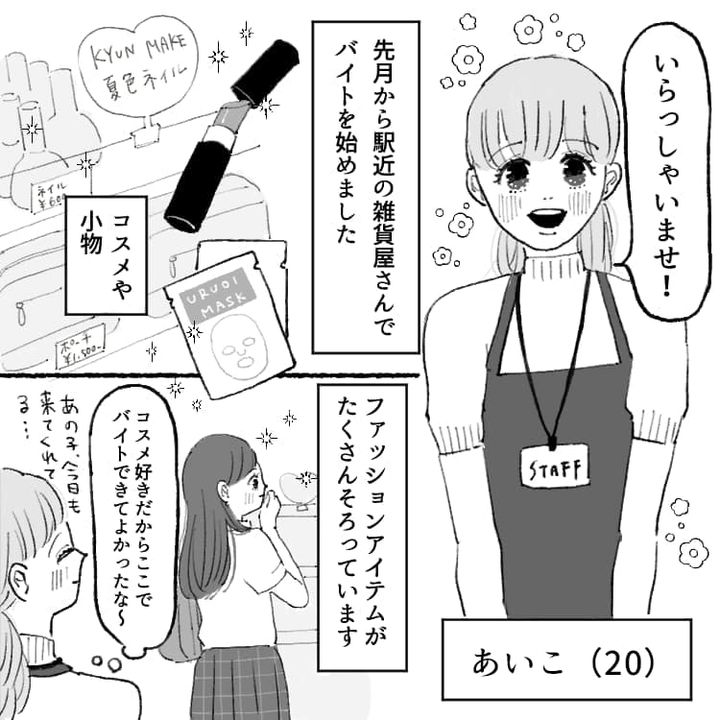 可愛いコスメやファッションアイテムに囲まれて、楽しく働いていましたが、ある日少し変わったお客さんが来るようになって……。