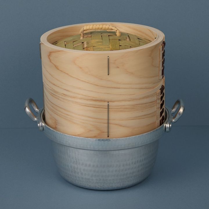 「茶碗蒸しや野菜蒸し、これで作ったら美味しいだろうな。国産の桧と竹で作られた中華せいろは、蓋から蒸気が程よく抜けるうえ、せいろ自体も蒸気を吸収するので、食材を美味しく蒸せるそう」