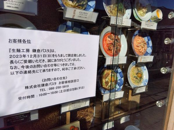 生麺工房 鎌倉パスタは、2023年12月31日をもって閉店しました。