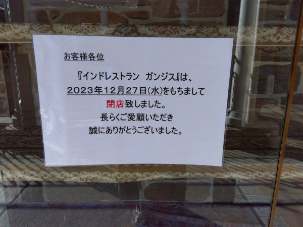インドレストラン ガンジスは、2023年12月27日をもって閉店しました。
