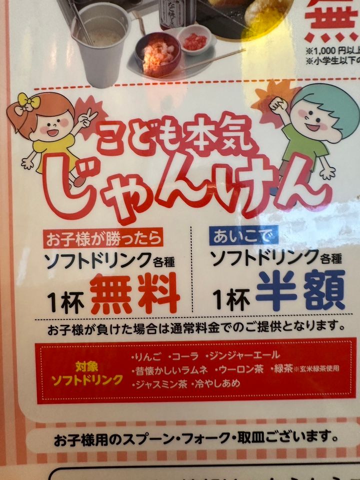 なんと子供がドリンクを頼む際、店員さんとのジャンケンに勝てばドリンクが無料!
