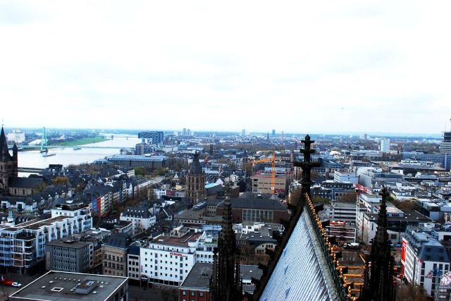 その反対側にはライン川を望む絶景も。展望台からは360度見渡せるので、ケルンの街並みや列車が行き来する駅など、さまざまな風景を楽しめます。