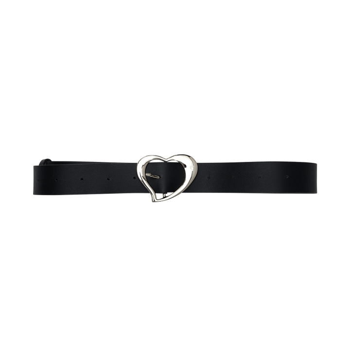 SNSでネックレスやチョーカーから火がついたハートモチーフはベルトのバックルまで飛び火。ベルトをつけるだけでY2Kみがアップするのも人気が出た理由みたい。