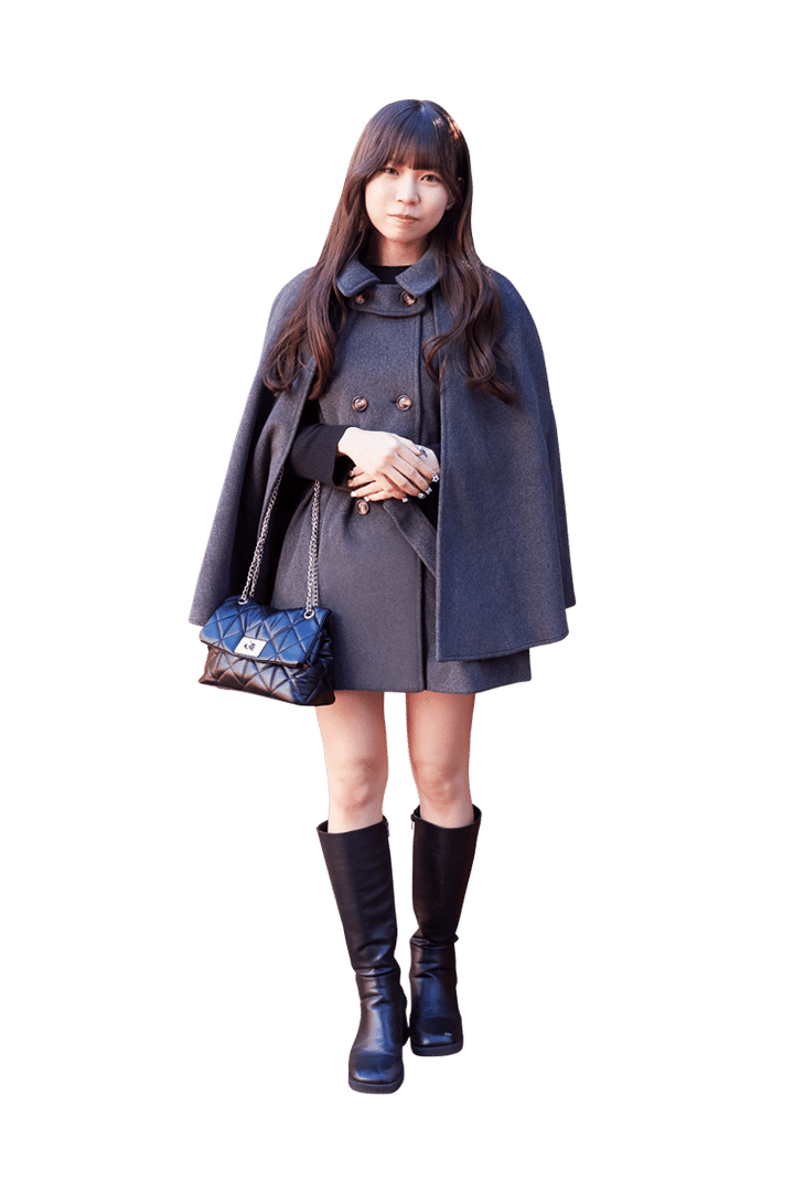 ウエストマークが高めで脚が長く見えるし、ケープコートは着ぶくれしなくて最高♡ ショーパンとロングブーツで肌見せさせたのがポイントです!」
