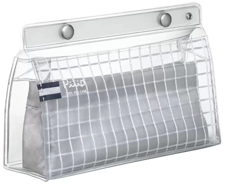 ペンや文具をまとめて入れることができるペンケース。中身が見える透明ケースにはよく使うペン類を、4つのポケットつきインナーケースにはふせんや修正テープなどの小物を整頓して収容できます。