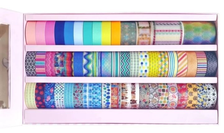 YOJOテープ2巻(50mm×6m)+2巻(25mm×6m)、マスキングテープ10巻無地(15mm×6m)、マスキングテープ40巻(15mm×6m)の計54巻の大容量のテープセット!マスキングテープだけでなく、デザイン養生テープもカラフルでかわいいのでギフトにもおすすめです。