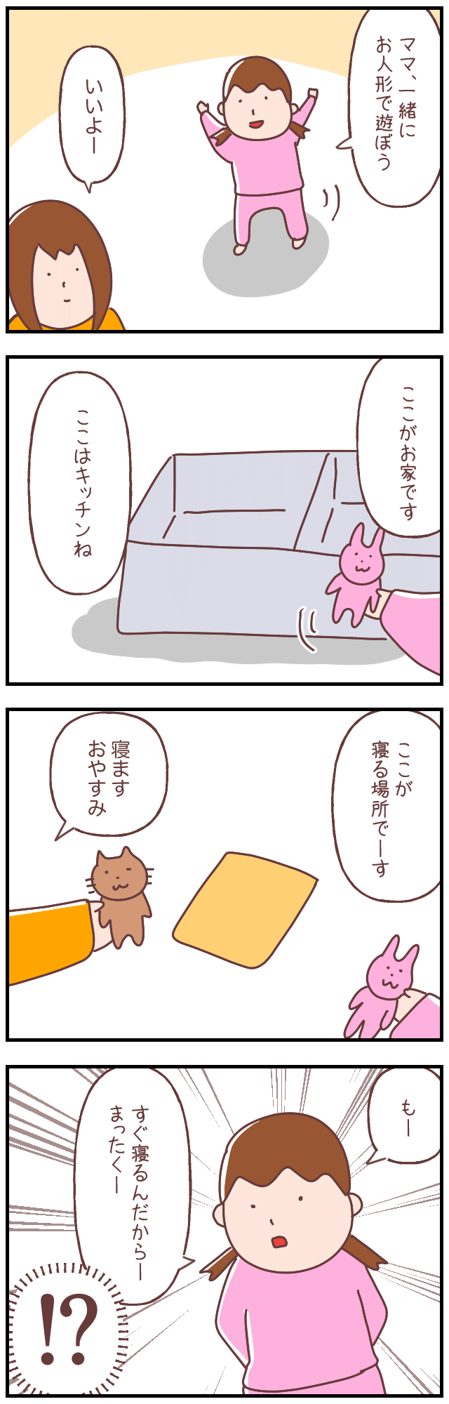 ・・なんで怒られるの?(汗)4歳娘の人形遊びでディスられる不条理なおままごと|マッマの育児漫画